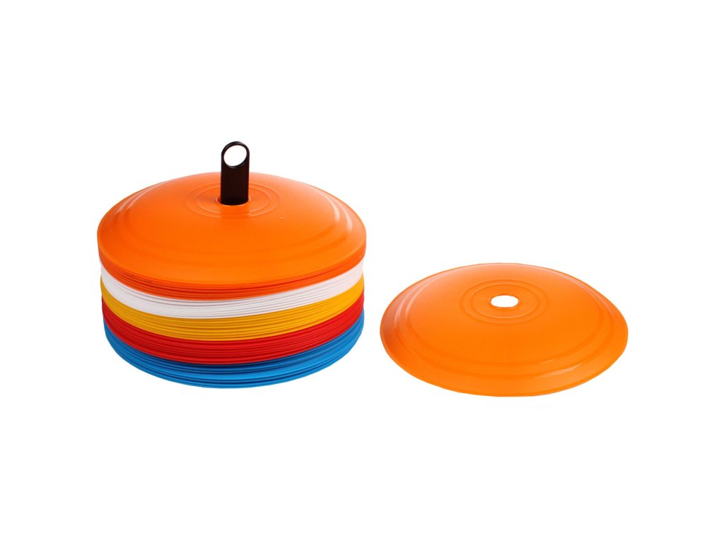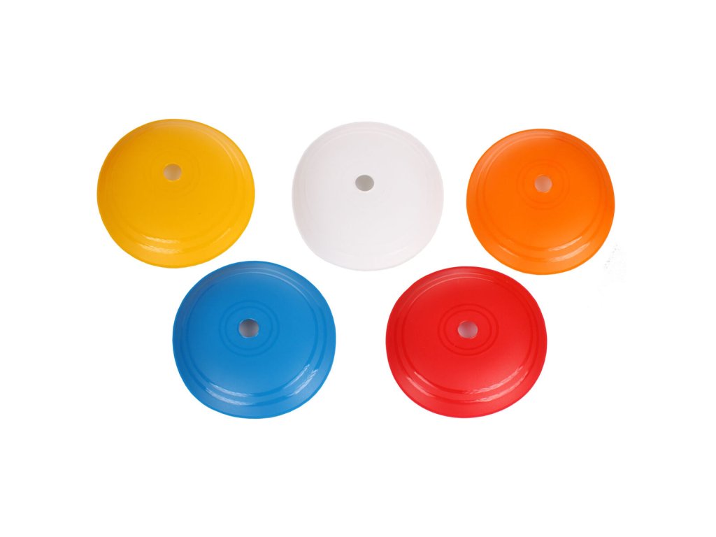 Vytyčovací mety Flat Disc s průměrem 23 cm a výškou 25 mm jsou vyrobené z odolného plastu a jsou vhodné pro tréninky v tělocvičně i venku. Díky různým barvám lze z met vytvořit pestrou a nápaditou dráhu. Sada je složená ze čtyřiceti kusů pěti různých barev. Součástí je také plastový stojánek pro snadné přenášení a uskladnění mezi jednotlivými tréninky. - sada: 40 ks - 5 barev - průměr: 23 cm - průměr otvoru: 25 mm - výška: 25 mm - hmotnost mety: cca 50 g - součástí praktický stojánekDoplňkové parametry